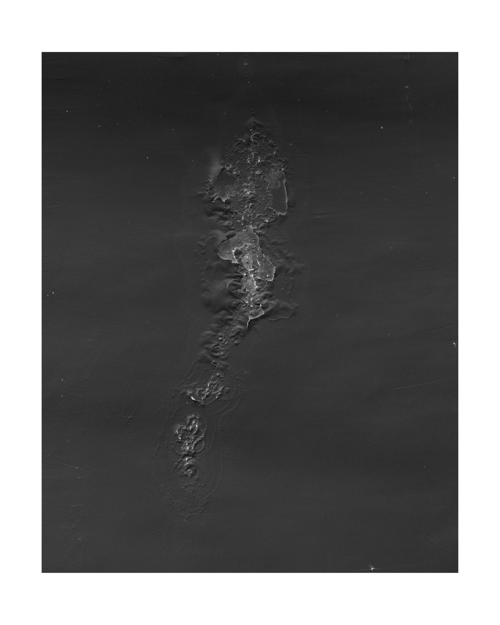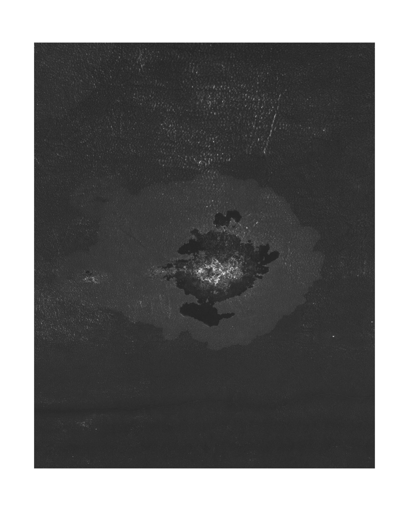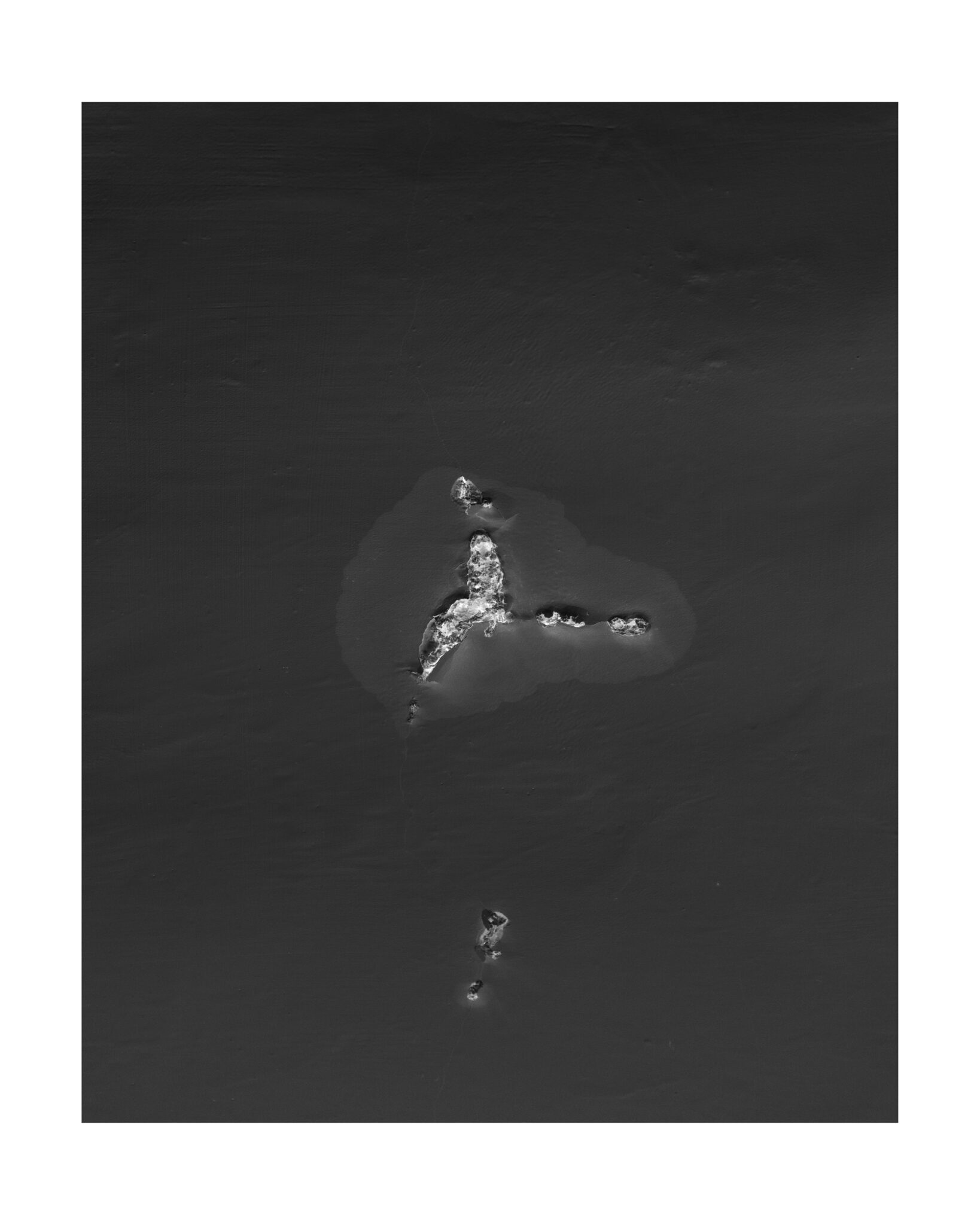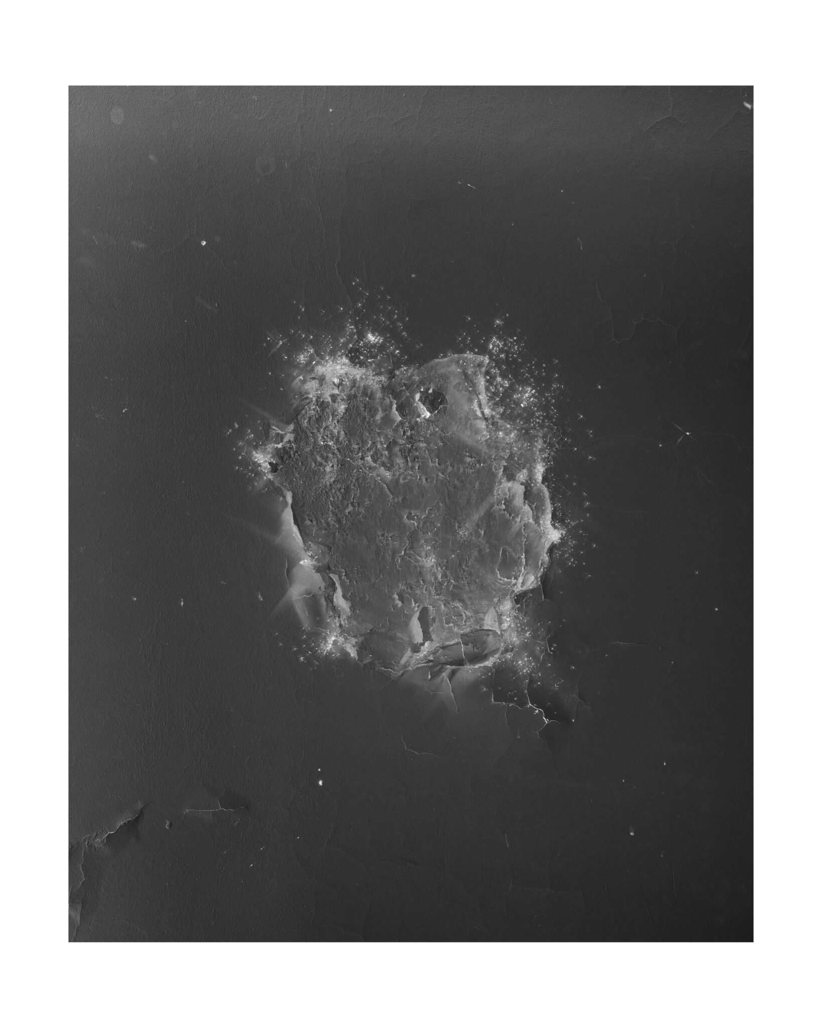 En parcourant les souterrains de la ville il part en quête de cette ile fantasmée et de ses consoeurs rocheuses: à travers des photographies de surfaces accidentées, où l’eau a percé l’épaisseur du sol jusqu’à atteindre les murs du métro , il invente un univers fait de récifs perdus dans l’océan. Art rupestre de l’imaginaire réinventé à même la peau des couloirs urbains, reliefs plâtreux et boursouflures exotiques d’une nature qui vient superimposer ses formes insulaires jusqu’à faire craquer l’écorce du quotidien.