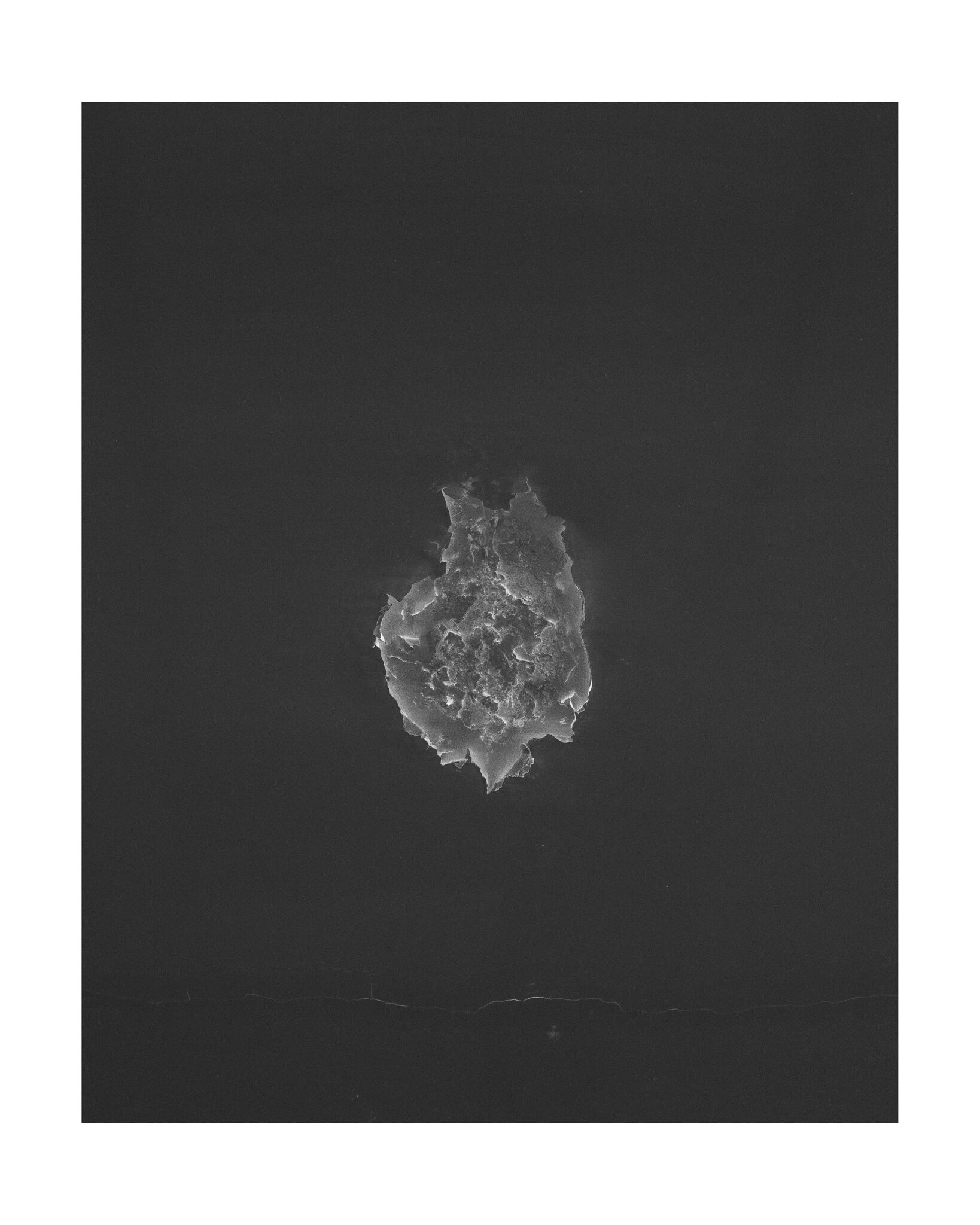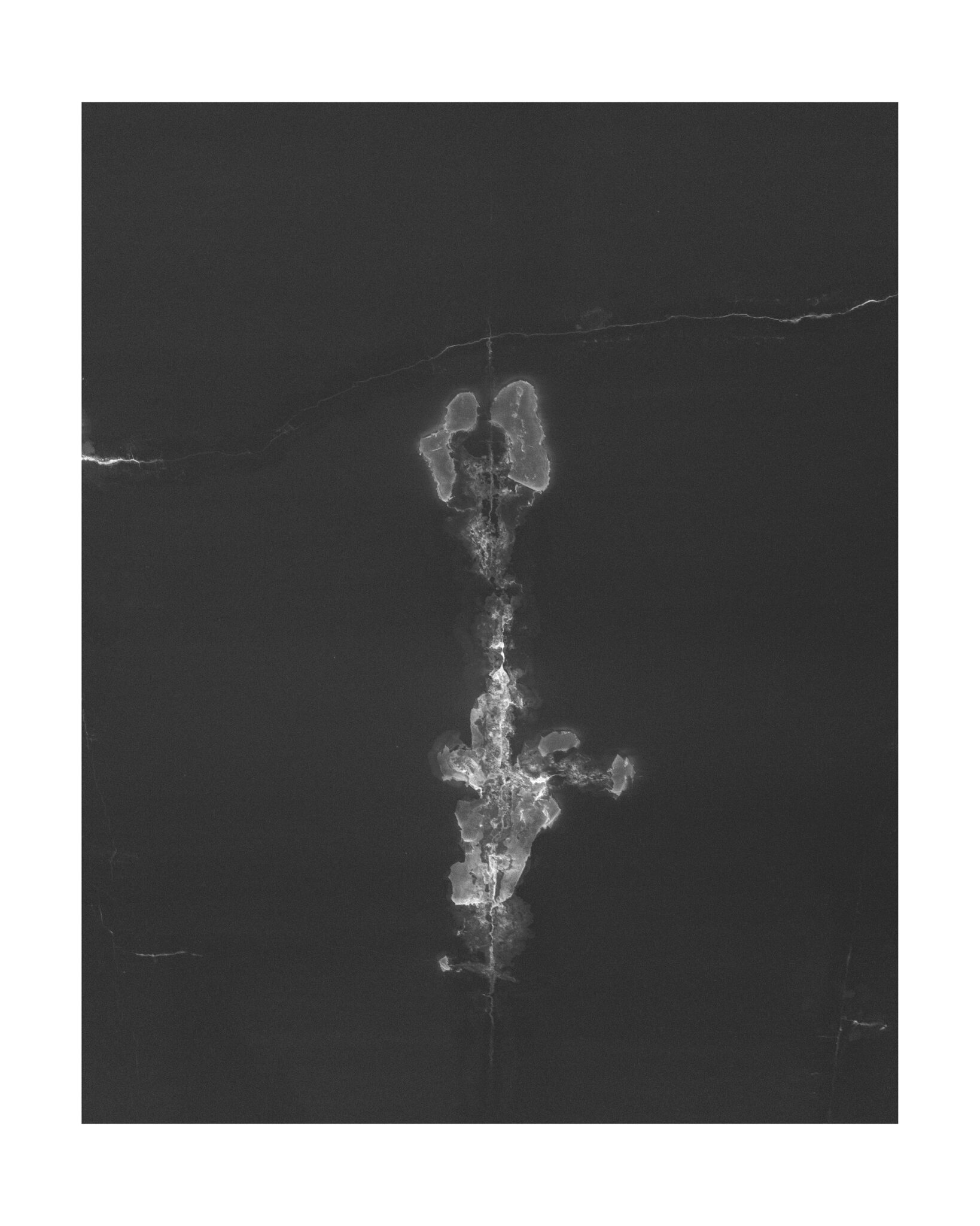 Ses photographies en noir et blanc forment une cartographie fantastique et intimiste d’un monde fait de vides et de pleins. Réinvention du réel à partir de l’inversion des échelles : le très loin détecté dans les failles du tout près, le détail qui devient pays, le rêve capable de s’incruster dans le matériau du concret. La roche défendue et idyllique se réincarne sous d’autres oripeaux et sous ses yeux, et ses images telles des radiographies de l’ordinaire fait paysage, révèlent la matière organique et minérale sans cesse réinventée et inaccessible.